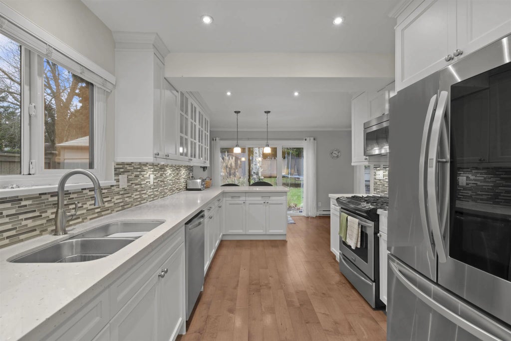 Tucked away on peaceful 15th Ave, this updated 1/2 duplex offers the feel of a detached home without the strata fees! You’ll be impressed by the charm & curb appeal. Step inside to a bright & airy south-facing L/R & D/R area, filled w/ natural light & anchored by a cozy gas fireplace w/ custom built-ins. The renovated kitchen features crisp white cabinetry, sleek quartz countertops, & S/S appliances, w/ direct access to the expansive backyard—perfect for entertaining, gardening, or relaxing in the sun. The main floor also includes a full bathroom-ideal for guests. Upstairs, you’ll find three generously sized bedrooms, including a spacious primary suite that easily fits a king-sized bed & boasts a modern ensuite. A second full bath completes the upper level. Close to parks, schools & beach!