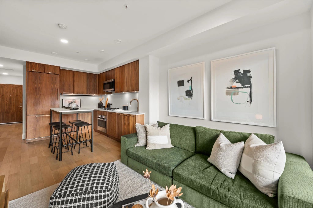 MASSIVE PRICE ADJUSTMENT. PRICED TO SELL. NOT SUBJECT TO GST. This beautifu 1-bedroom + den suite at 2550 Garden Drive features 634 sqft of open and light filled space. Incredible construction quality from Bucci Developments. Spacious and thoughtfully designed kitchen with premium integrated Fulgor & Milano appliances, wood cabinets and quartz counter. Further features include A/C, HRV system, 9' ceilings, engineered white oak floors, built-in laundry station, custom front entry storage niche, roller-shades and more! Just steps to Nanaimo St and Commercial Dr., Trout Lake Park and Commercial-BroadwaySkytrain. Amenities include a social lounge, expansive outdoor terrace and garden plots. Storage and parking incl. Currently tenanted but same suite floor plan available to show.