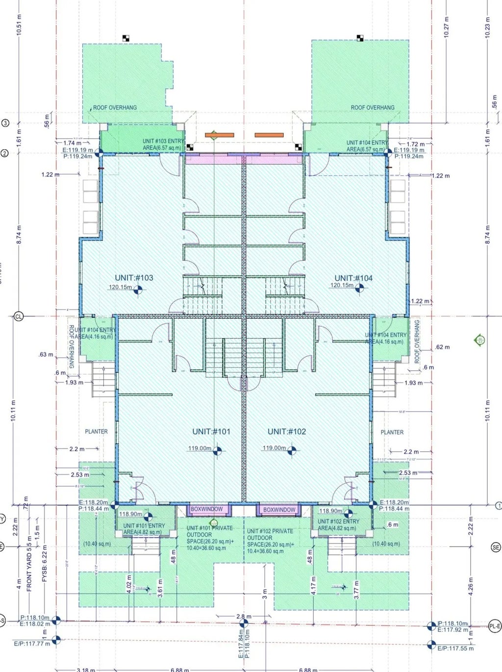 Central Location with this 4 plex BP Approved and Whole Design Package for this 8048 sq. lot. Approved FSR is 75%=6037.8 sq.f; 2 storeys, 8 parking spaces; Heating will be in slab radiant water heating supplied by boiler. Unit 101 =1482.4; unit 102=1482 sq,f on the Dansey Ave, unit 3=1496 sq.f; unit 4=1496 sq,f on each side. $280K fee and cost have been paid/included. Ready to built for your dream houses/ or money making project!