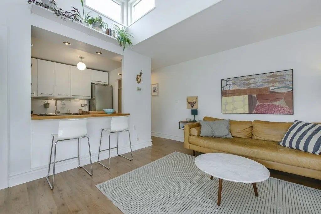TOP FLOOR South West exposure. You’ll love this fully renovated 1 bed and den with no details spared. Fully renovated kitchen, bathroom and new windows throughout. Amazing clerestory windows with 16' vaulted ceilings. You can’t beat the light in here! Fantastic views of the North Shore Mountains & Woodland Park. This is an amazing opportunity to own in a very well-run strata in the heart of Commercial Drive/Hastings Sunrise. Building updates include new roof, updated exterior siding, and new elevator. Three laundry rooms in the building, laundry on each floor. Small boutique style building that has a special community. Rentals and pets are welcome. Walkable to everything, do not miss this.