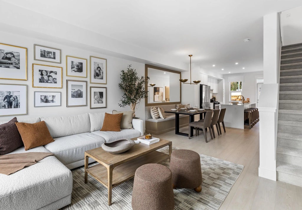 Welcome to VERSANT. A boutique collection of Modern Craftsman-inspired townhomes built by award-winning Infinity Properties. This MOVE IN READY 3-bed 2.5 bath home features a functional layout for growing families. Large kitchen with custom cabinetry, quartz countertops, SS app w/GAS range and entertaining island with eating bar. Covered deck off kitchen w/Gas BBQ outlet leads to a RAISED fully fenced BACKYARD. Laminate flooring on main floor, high eff gas furnace with AC or Heatpump and Rinnai water heater. Upper floor feat. 3 bedrooms incl. SPACIOUS Primary bedroom w/spa inspired ensuite. Enjoy easy access to hiking trails, mountain biking routes + lakes. Only 10 minutes from the Skytrain, West Coast Express + Coquitlam City Centre Shopping + Amenities. Open Sat-Wed 12-5 PM.