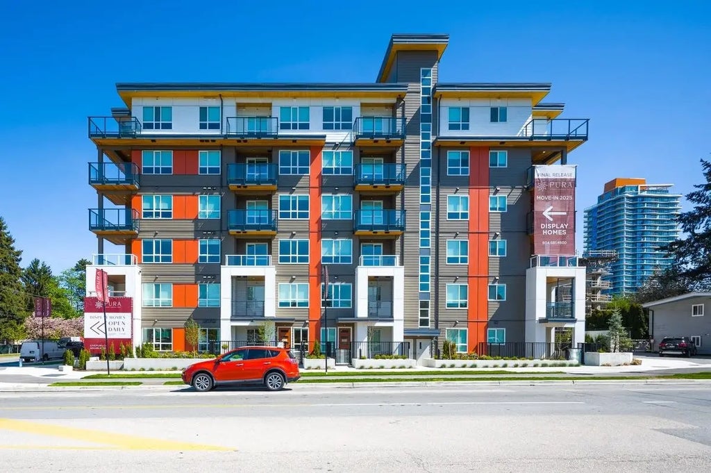 NO GST! BRAND NEW! PERFECT FOR 1ST TIME HOME BUYERS & INVESTORS! Welcome home to this beautiful 1BD, 1 BTH condo at Pura by Adera in Surrey Central's popular West Village, just steps away from Kwantlen Polytechnic University, 2 SkyTrain stations, parks, cafes, schools & more! Bright & spacious with radiant in-floor heating & a full-size S/S appliance package, w/ gas range, microwave, dishwasher, washer & dryer. Covered, private patio entends the space outdoors for year-round enjoyment! Incredible amenities w/ huge rooftop terrace w/gas fireplace, BBQ & putting greens.Plus high-end fitness facilities, playground, party room, co-working lounge & bike repair workshop.Strata fees include heat, hot water & gas.Storage locker. Rentals & pets allowed.