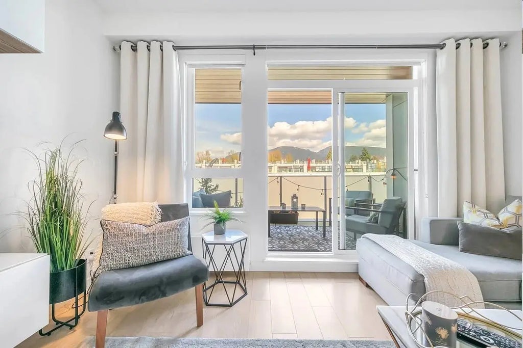 Stunning 2 bed & 2 bath CORNER unit PENTHOUSE w/views of the North Shore Mountains w/westerly views of spectacular sunsets. Built by the reputable MARCON! You'll appreciate the 9' ceilings & abundance of natural light with a lovely cross breeze. 114 sq ft of balcony space boosts enough space for dining alfresco! Enjoy entertaining in the chef's kitchen complete with island, polished engineered stone countertops & a premium appliance package. The primary bedroom can easily accommodate a California King bed. HEAT AND HOT WATER INCLUDED in your maintenance fee along w/ under ground parking, 2 storage lockers and bike room. With groceries, coffee shops, restaurants & pharmacy at your door step this neighbourhood truly caters to a seamless lifestyle. ROOF TOP deck, dog washing & play area.